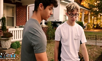 Nerdy twink without a condom fucks deepthroating stepbrother