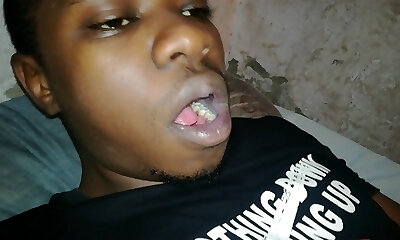 Ebony twink enjoys an first-timer blowjob from white fat man