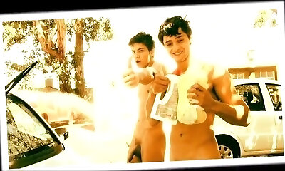 Naked Cute Stud's Gang Taking Care For A Van Wash