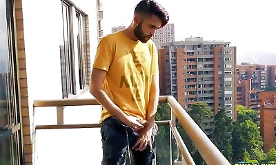 Jerking off my hefty uncircumcised cock in the balcony did i get caught?