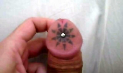 Pierced Cock in CBT Bondage, Sausage Plug,Electro, spunk in Tube